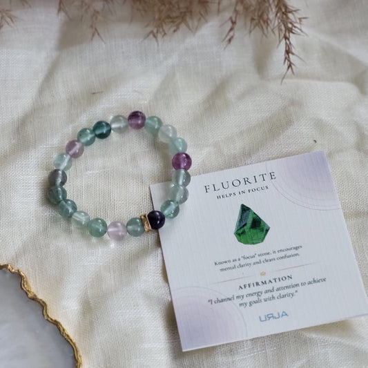 Bracelet Set for Focus and Mental Clarity - Flourite, Amethyst and Clear Quartz