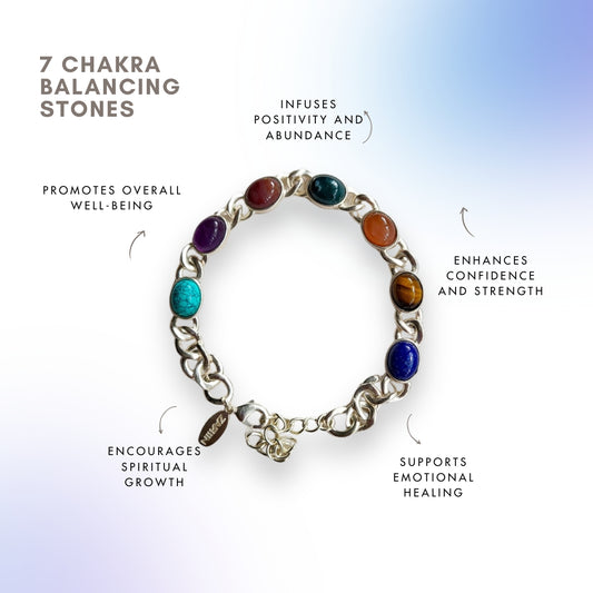 7 Gemstones Chakra Balancing Bracelet, In Silver For Men