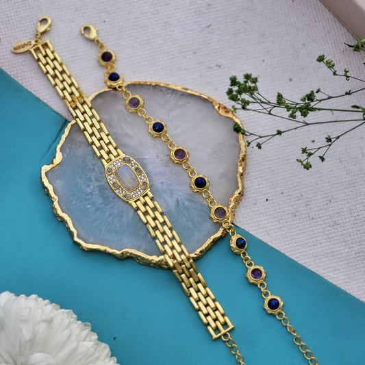 Bracelet Set for Focus and Mental Clarity - Flourite, Amethyst and Clear Quartz